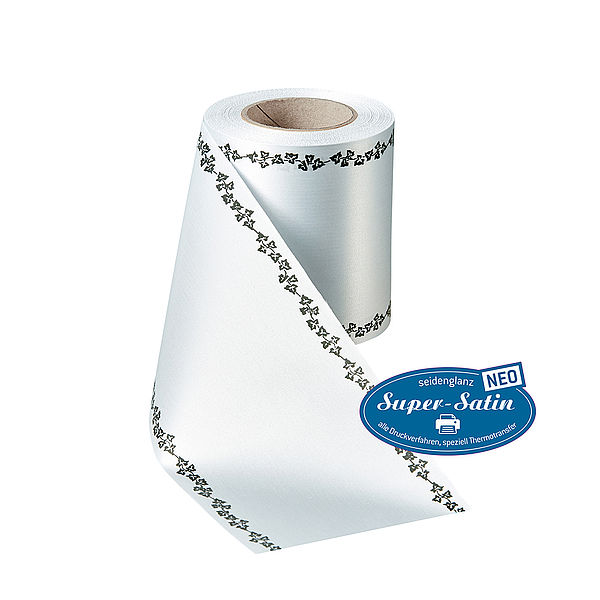 Kranzband Super-Satin-NEO-Rand-Efeu-Schwarz
