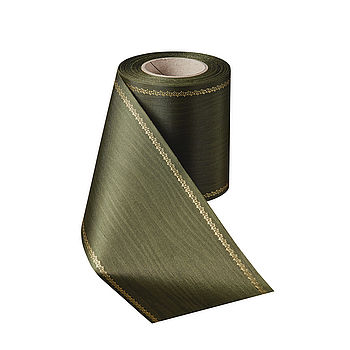 Kranzband Präge-Moiré mit Rand Z-Rand - Art. 03078Ein traditionelles und gleichzeitig stilvolles Muster auf unseren Kranzbändern ist der Z-Rand. Er eignet sich für viele in Kreationen der Trauerfloristik.