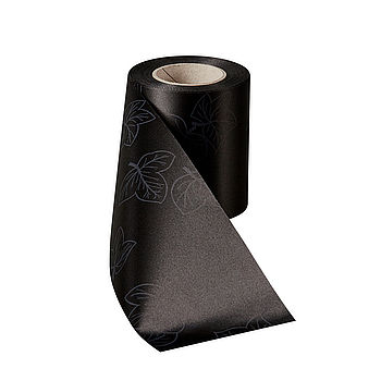 Kranzband Satin Alloverdruck Efeu - Art. 09960Das ganz mit Efeu bedruckte Kranzband aus Satin wirkt dezent und schmückt gleichzeitig jedes florale Werk. Das Efeu-Motiv ist ein klassisches Dekor in der Trauerfloristik.