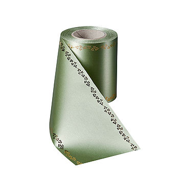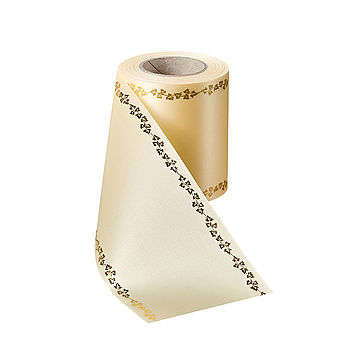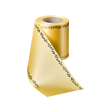 Kranzband Satin mit Rand Efeu Gold - Art. 09738Rosen sind ein pietätvolles Motiv in der Trauerfloristik. Satin-Kranzband harmoniert perfekt mit dem edlen Rosen-Rand, viele florale Werke lassen sich damit kreativ gestalten.