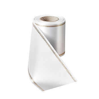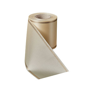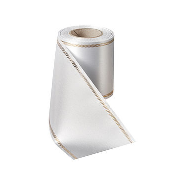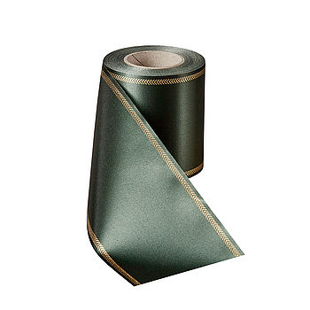 Kranzband Satin mit Rand Fischgrat - Art. 09708Das fein strukturierte Fischgrat-Muster harmoniert sehr gut mit Satin. Der Fischgrat-Rand eignet sich für nahezu alle Kreationen mit Kranzband in der Trauerfloristik.