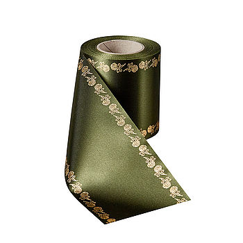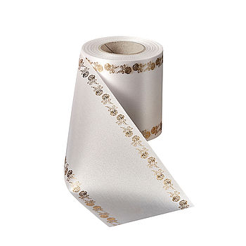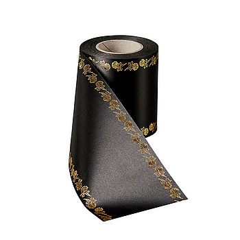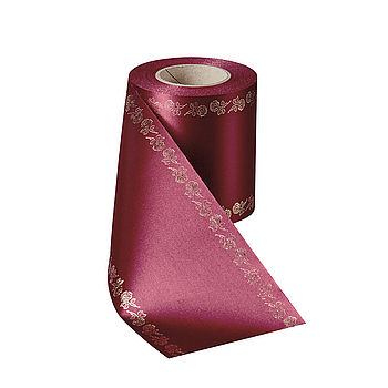 Kranzband Satin mit Rand Rose - Art. 09718Rosen sind ein pietätvolles Motiv in der Trauerfloristik. Satin-Kranzband harmoniert perfekt mit dem edlen Rosen-Rand, viele florale Werke lassen sich damit kreativ gestalten.