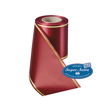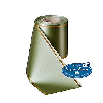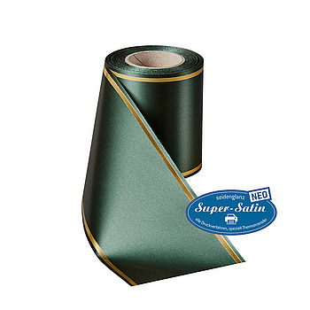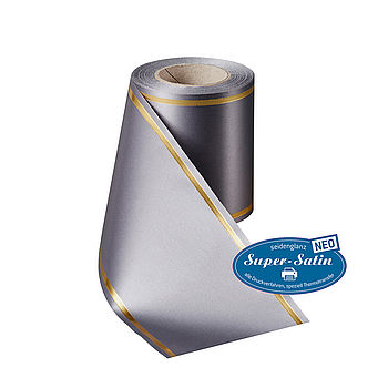 Kranzband Super-Satin NEO mit Strichrand Gold - Art. 07508Den in der Floristik beliebten Strichrand bieten wie auch auf unserer Top-Kranzband-Qualität an.