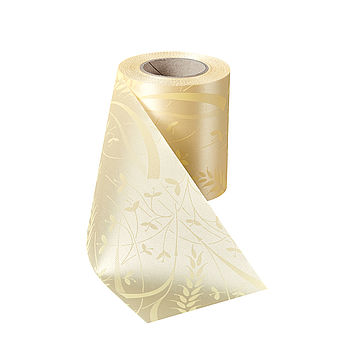 Kranzband Super-Satin mit Alloverdruck Maiglöckchen - Art. 06990Ganz mit Maiglöckchen verziert ist dieses ansprechende Kranzband aus hochwertigem Super-Satin.