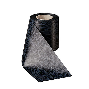 Kranzband Super-Satin mit Alloverdruck Moiré - Art. 06970Das Moiré-Muster entfaltet auf dem edel glänzenden Super-Satin ein dezent-klassische Optik.