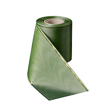 Kranzband Verzugs-Moiré Piqué Gold - Art. 00478Das wellenförmige Moiré bildet eine harmonische Einheit mit der Piqué Goldkante Uni. Gold passt als pietätvolle Farbe zu vielen Gestaltungen in der Trauerfloristik.