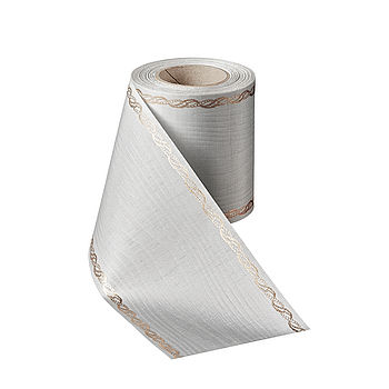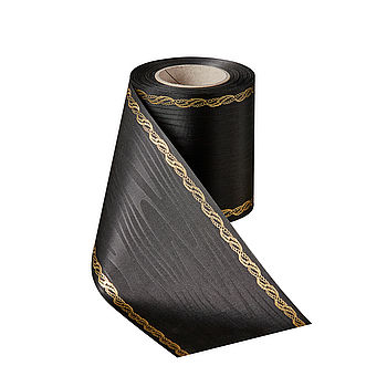 Rouwlint Moiré-print met parelrand - Art. 03088De parelrand is een symbool van eeuwigheid. Het parelrandmotief op kranslint verfraait elke bloemencreatie.