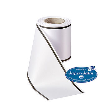 Rouwlint Super-Satin NEO met lijnrand zwart - Art. 07509We bieden ook de in de bloemisterij populaire lijnrand aan op ons rouwlint van topkwaliteit.