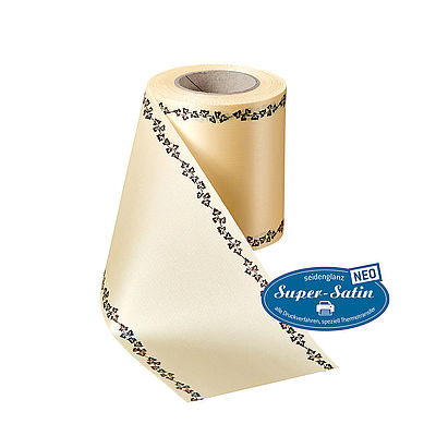Kranzband Super-Satin-NEO-Rand-Efeu-Schwarz